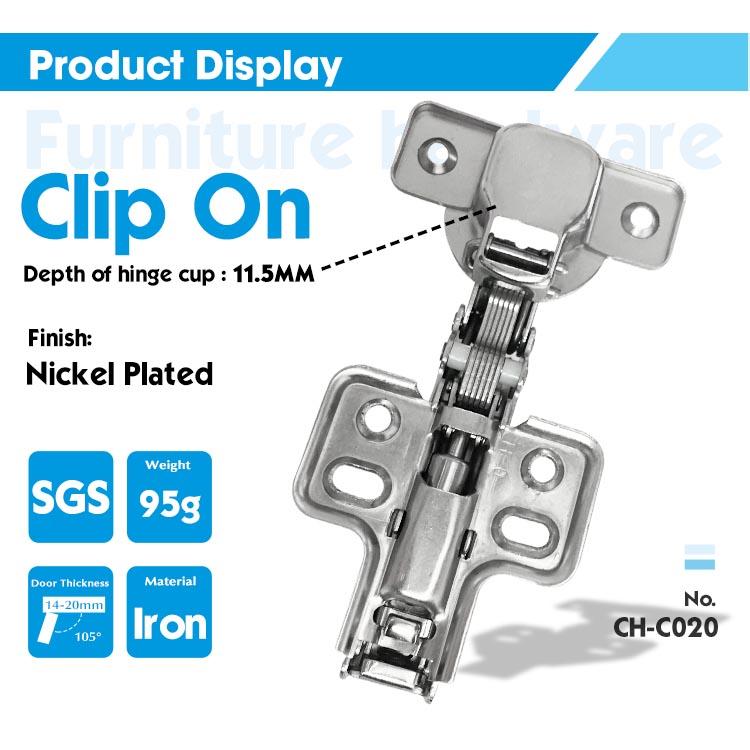 Compatibilité standardisée avec les cupules de 35 mm Conçue avec une taille de coupelle standard de 35 mm, la charnière offre une large compatibilité avec les portes d'armoires, favorisant une production efficace et un remplacement facile.