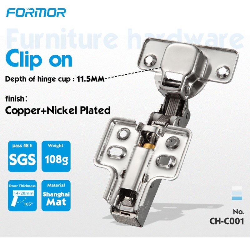 Diamètre standard de la tête de cuvette : 35 mm : Conçue avec une tête cylindrique de 35 mm de diamètre, cette charnière respecte les spécifications standard de l'industrie, assurant ainsi sa compatibilité avec une large gamme de portes d'armoires et de gabarits de perçage. Boucle plate pour une fixation sécurisée Dotée d'une boucle plate, cette charnière offre une liaison sûre et stable entre la porte et le meuble, améliorant ainsi la durabilité globale et assurant une fiabilité à long terme au quotidien. |